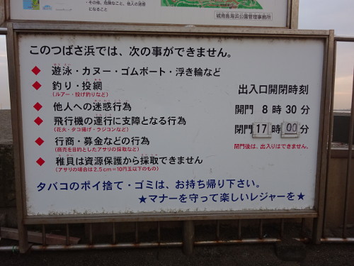 足場の良い北側の護岸一帯から釣りができ、ハゼ・アナゴ・サヨリ・メバル・カサゴ・ウミタナゴ・クロダイ・スズキなどが釣れる。すこし沖にテトラが入っており、そこに魚がついているようだ。駐車場は第一と第二があるが、釣りをする際は第二駐車場に駐車すると釣り場に近い。また東側にあるつばさ浜では潮干狩りが楽しめる。