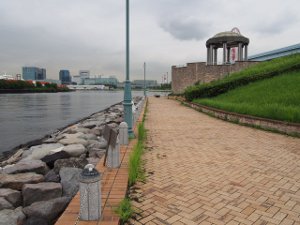 東京臨海新交通臨海線(ゆりかもめ)・東京ビッグサイト駅のすぐ目の前にある公園。岸壁や西側にある磯場から釣りができ、ハゼ・クロダイ・スズキなどが釣れる。投げ釣りが禁止されているため、岸壁からのヘチ釣りがおすすめの釣り場だ。