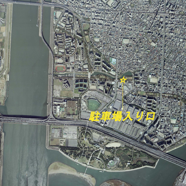 左右にある矢印をクリックすると”空中写真”と”広域地図”がスライドします↓